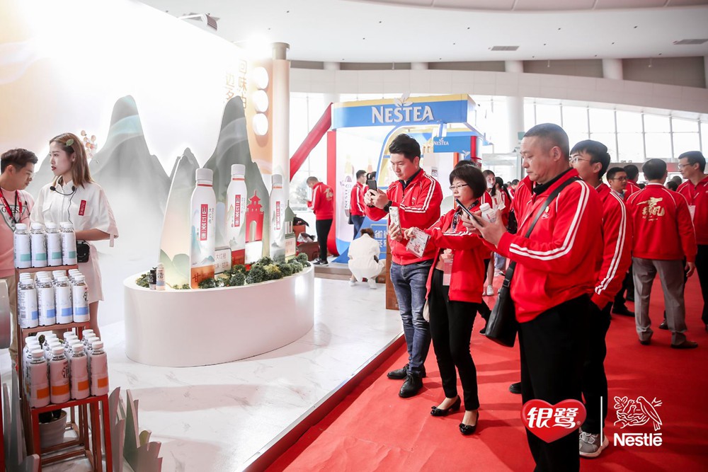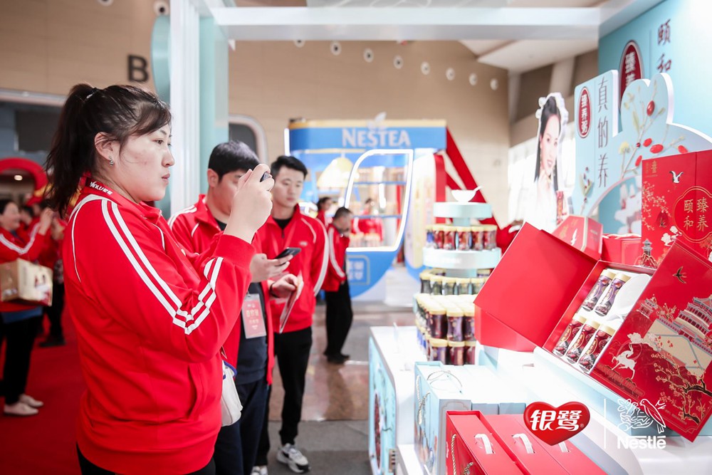 大會(huì)正式開(kāi)始前,經(jīng)銷(xiāo)商們紛紛抵達(dá)現(xiàn)場(chǎng)。不同于往年,眾多新穎時(shí)尚的產(chǎn)品堆頭陳列:與頤和園IP合作的臻養(yǎng)粥古風(fēng)禮盒,雀巢咖啡世界咖啡系列等等新品,吸引經(jīng)銷(xiāo)商們和業(yè)務(wù)團(tuán)隊(duì)競(jìng)相拍照、品嘗產(chǎn)品,現(xiàn)場(chǎng)氛圍火爆。本次大會(huì)最引人注目的是火紅色經(jīng)銷(xiāo)商服上的“贏”字,展現(xiàn)了此次大會(huì)的信心與決心。