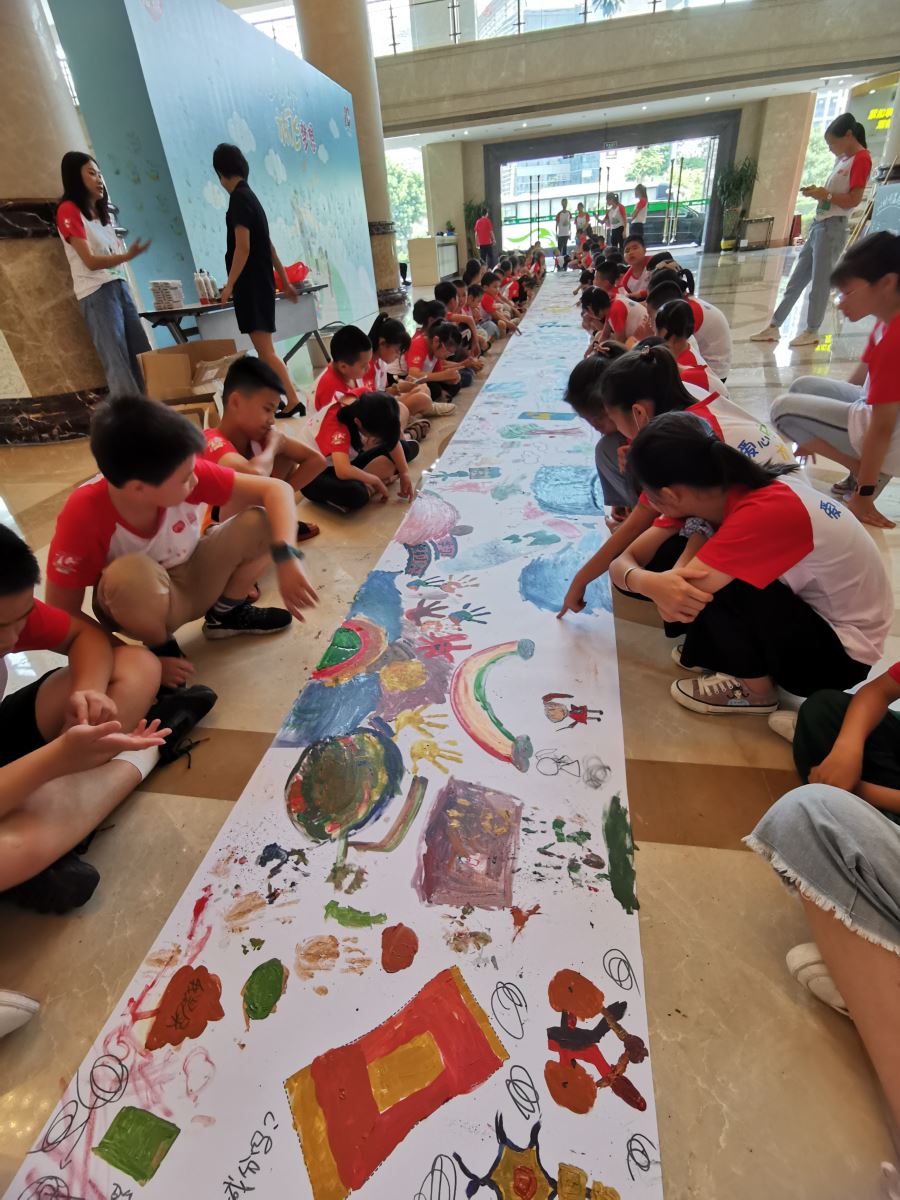 (圖為 小朋友合作完成的長(zhǎng)畫(huà)卷)
