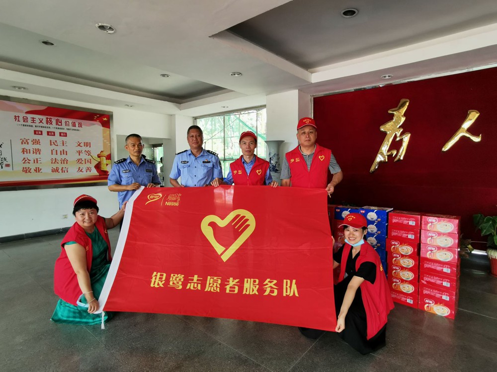 銀鷺志愿者們向不懼疫情與酷暑的交警大隊民警們表示誠摯感謝,向他們服務人民群眾的無私奉獻精神致敬,希望民警們注意身體,做好防暑防曬工作,保障自身安全,并為他們送上了礦泉水、牛奶花生、八寶粥等慰問品。